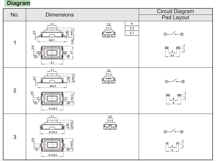 3×6×2.5Light touch switch, light touch buttons, patch type light touch switch, pin type light touch switch, miniature light touch switch,