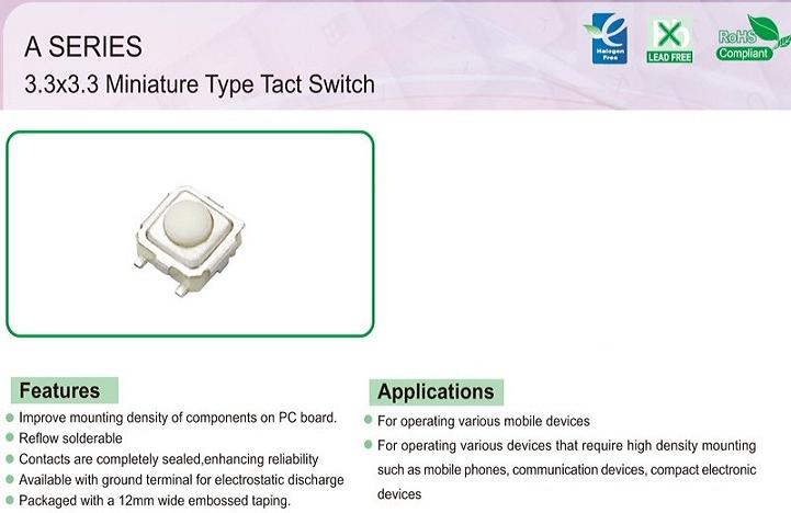 3.3×3.3 Light touch switch, light touch buttons, patch type light touch switch, pin type light touch switch, miniature light touch switch,