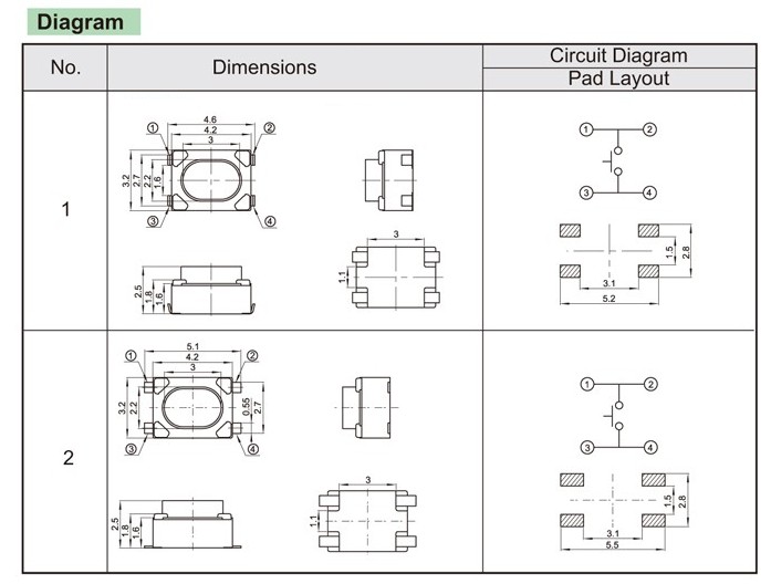 3.2×4.2×2.5Light touch switch,light touch buttons,patch type light touch switch,pin type light touch switch,miniature light touch switch,