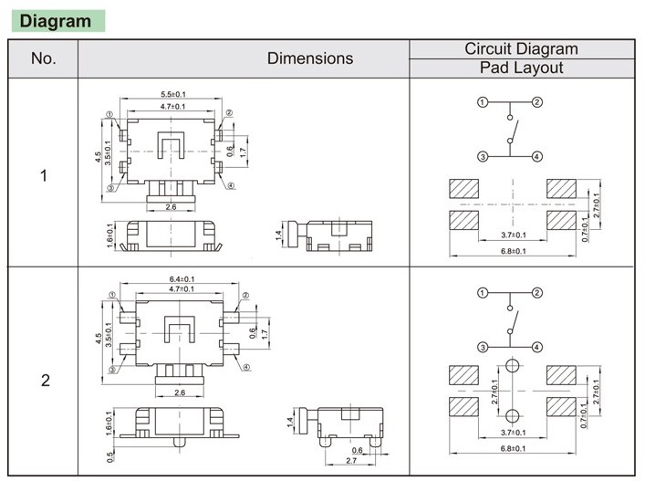 5.5×4.5×1.6Light touch switch, light touch buttons, patch type light touch switch, pin type light touch switch, miniature light touch switch,