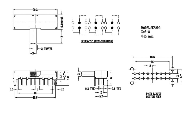 使用功率/額定值Rating:DC 50V 0.3A~1A 觸點電阻/Contact Resistance:< 100 mΩ 絕緣電阻/Insulation Resistance:≥ 100 MΩ 耐壓/Withstand Voltage:500V AC for 1 minute 使用壽命/Life cycles:10000次 操作溫度/Operationg Temperature:-16℃to+60℃ 儲存溫度/Storage Temperature:-40℃to+85℃ 符合標準/Complies with:RoHs&Reach