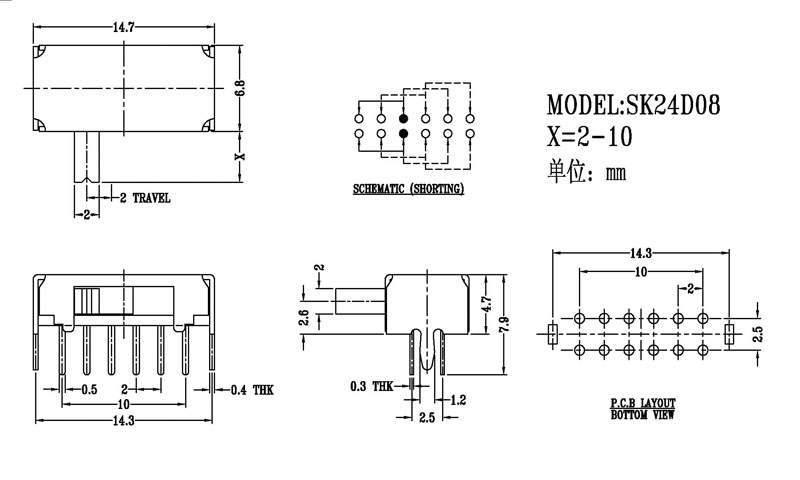 使用功率/額定值Rating:DC 50V 0.3A~1A 觸點電阻/Contact Resistance:< 100 mΩ 絕緣電阻/Insulation Resistance:≥ 100 MΩ 耐壓/Withstand Voltage:500V AC for 1 minute 使用壽命/Life cycles:10000次 操作溫度/Operationg Temperature:-16℃to+60℃ 儲存溫度/Storage Temperature:-40℃to+85℃ 符合標準/Complies with:RoHs&Reach