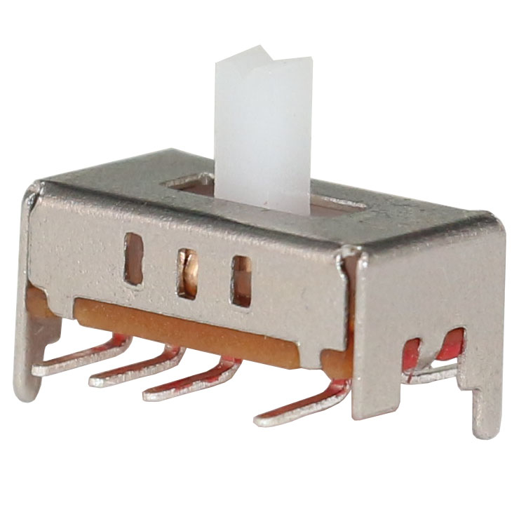 Slide Switch Main data Rating:DC 50V 0.3A~1A ContactResistance:< 100 mΩ InsulationResistance:≥ 100 MΩ Withstand Voltage:500V AC for 1 minute Operating Force:180~500gf Life cycles:10000次 Operationg Temperature:-16℃to+60℃ Storage Temperature:-40℃to+85℃ Complies with:RoHs&Reach