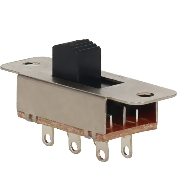 Slide Switch Main data Rating:DC 50V 0.3A~1A ContactResistance:< 100 mΩ InsulationResistance:≥ 100 MΩ Withstand Voltage:500V AC for 1 minute Operating Force:180~500gf Life cycles:10000次 Operationg Temperature:-16℃to+60℃ Storage Temperature:-40℃to+85℃ Complies with:RoHs&Reach