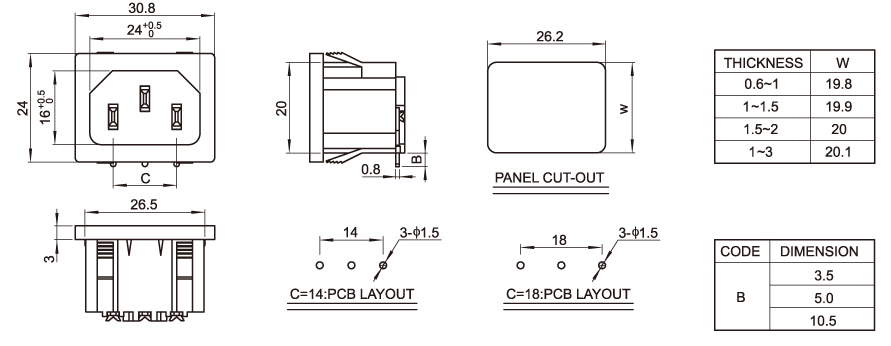 Model number: DB-14-2P-55 : Key words: the end socket of the product, the end power socket, the pin socket, AC power socket and socket. Directions: small home appliance character power supply;Main engine box socket;Power socket of the battery car;Electrical socket 30.8*24 feet inches: Current voltage: 2.5a 250V.