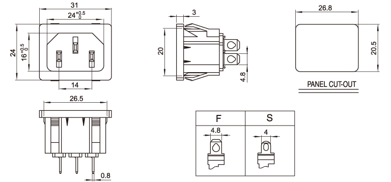 Model number: DB-14-5A: Key words: the end socket of the product, the end power socket, the pin socket, AC power socket and socket. Directions: small home appliance character power supply;Main engine box socket;Power socket of the battery car;Electrical socket 31*24 feet inches: Current voltage: 10a 250V.