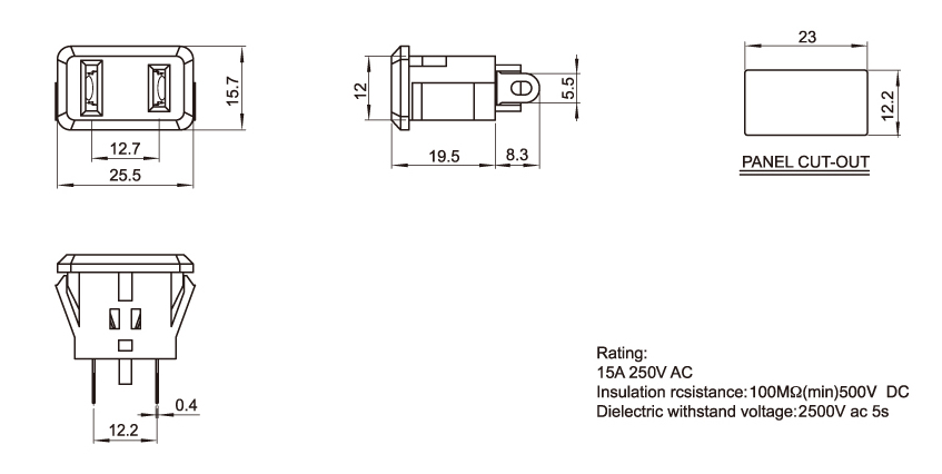 Model number: DB - F - the M4: Key words: American socket, American standard socket, American power cord socket Purpose: inverter socket;Electric car battery socket;American standard socket;AC power socket Or: 25.5 * 15.7 Current voltage: 10a 250V