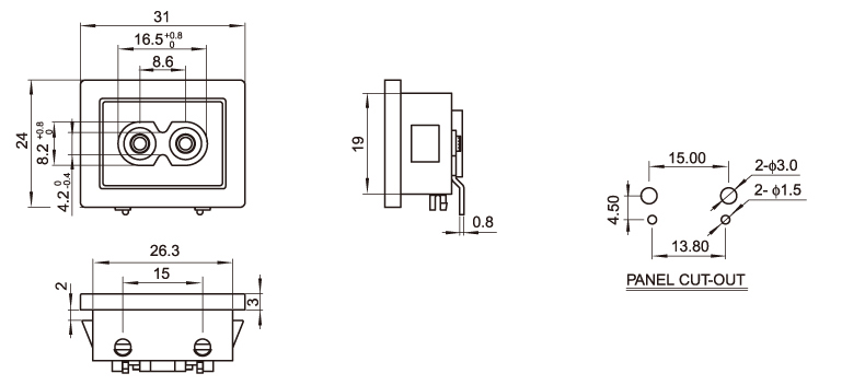 Model number: DB - 8-8 ap22: Key words: octagon socket: octagon socket;Adapter power socket Power adapter: laptop power supply;Medical device power supply;The charger. Or: 31 * 24 Current voltage: 2.5a 250V
