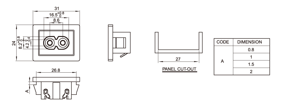 Model number: DB - 8-8 es8: Key words: octagon socket: octagon socket;Adapter power socket Power adapter: laptop power supply;Medical device power supply;The charger. Or: 31 * 24 Current voltage: 2.5a 250V