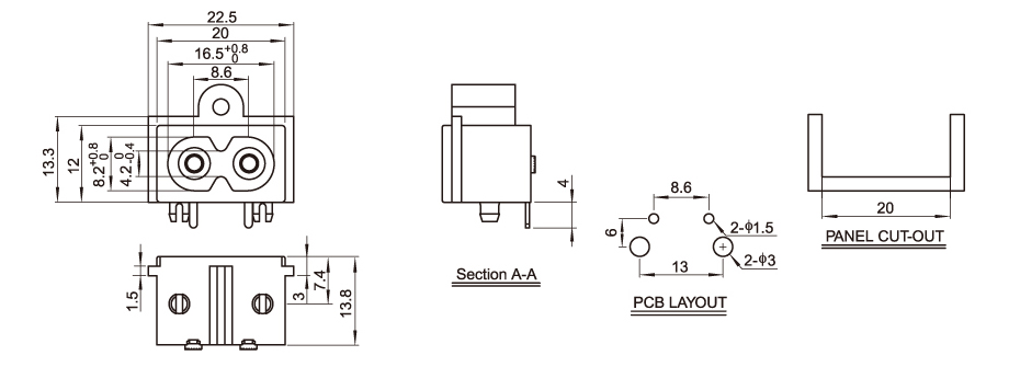 Model number: DB - 8-12 p9: Key words: octagon socket: octagon socket;Adapter power socket Power adapter: laptop power supply;Medical device power supply;The charger. Or: 22.5 * 13.3 Current voltage: 2.5a 250V
