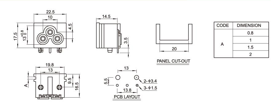 Standard: IEC 60320 C6 Rating: 2.5A 250V AC Insulation Resistance: 100MΩ 500V DC/1 minute Dielectric Strength: 2000V AC/1 minute Housing Material: Thermoplastic 94V-2~V-0