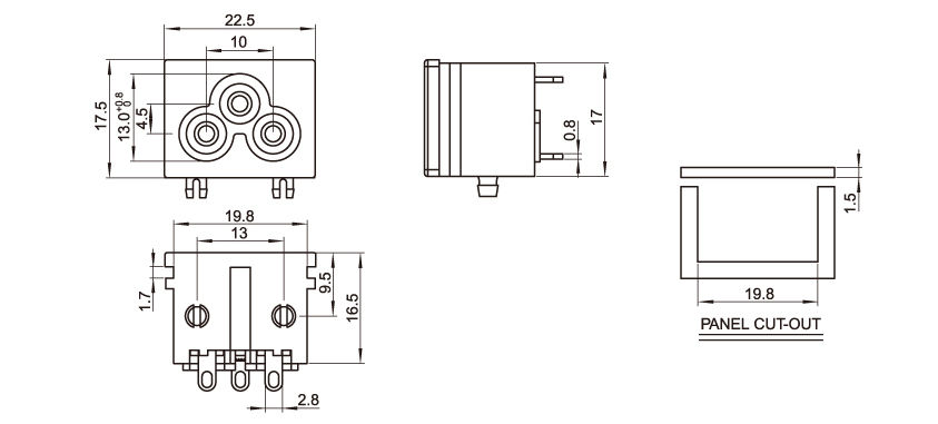 Standard: IEC 60320 C6 Rating: 2.5A 250V AC Insulation Resistance: 100MΩ 500V DC/1 minute Dielectric Strength: 2000V AC/1 minute Housing Material: Thermoplastic 94V-2~V-0