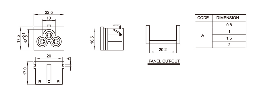 Standard: IEC 60320 C6 Rating: 2.5A 250V AC Insulation Resistance: 100MΩ 500V DC/1 minute Dielectric Strength: 2000V AC/1 minute Housing Material: Thermoplastic 94V-2~V-0