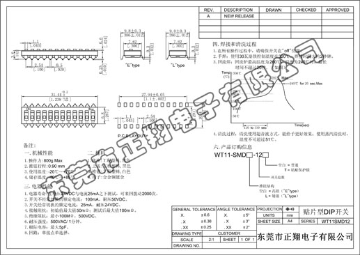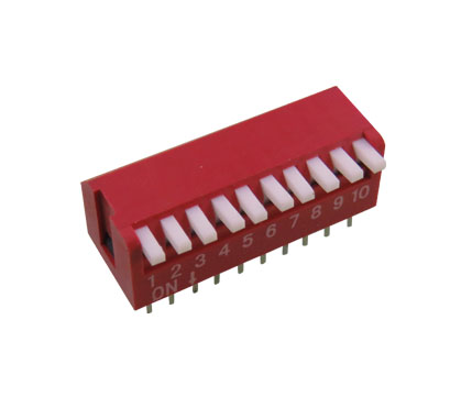 Pitch 2.54mm pitch, sliding in-line switch, is two-state. Compared to the KG series, its actuators are only half as powerful. The actuator is 4/6Nylon, UL94V-0, White; the cover material is PPS, UL94V-0, Black. It is also gold-plated contacts, temperature range -40 to 85 degrees, suitable for industrial grade