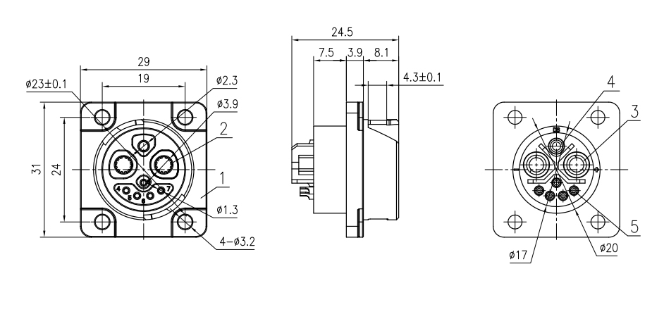 寿命:3000次 / 使用温度:-20℃~80℃ / 型号:M23方形母座2+1+5 / 黑色