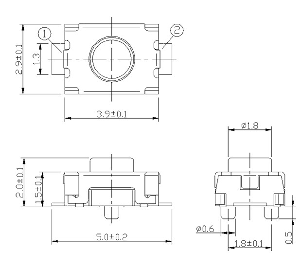 尺寸: 3.9X2.9mm 产品分类: 轻触开关 - A系列 / MINI型 应用 ※ 便携式音响 ※ 手机和掌上电脑 ※ 各种数码设备的操作 特点 ※ 提高PCB组件的安装密度 ※ 回流可焊 ※ 触点完全封装,提高可靠性 ※ 用12mm宽的编带包装