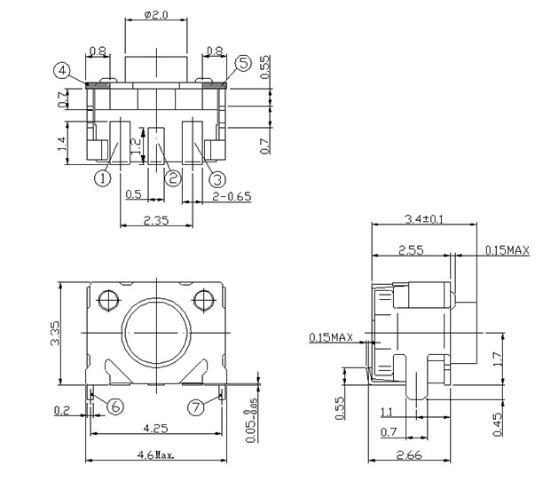 尺寸: 4.5X2.56mm 产品分类: 轻触开关 - A系列 / 迷你型 应用 ※ 便携式设备 ※ 手机和掌上电脑 ※ 各种数码设备的操作 特点 ※ 侧边类型可以在PCB上侧按 ※ 用12mm宽的编带包装