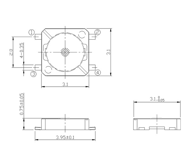 尺寸图: 3.1X3.1mm 产品分类: 轻触开关 - A系列 / 迷你型 应用 ※ 用于操作各种移动设备 ※ 用于操作各种需要高密密安装的设备 ※ 如手机,通讯设备,紧凑的电子设备 特点 ※ 提高PCB组件的安装密度 ※ 回流可焊 ※ 触点完全封装,提高可靠性