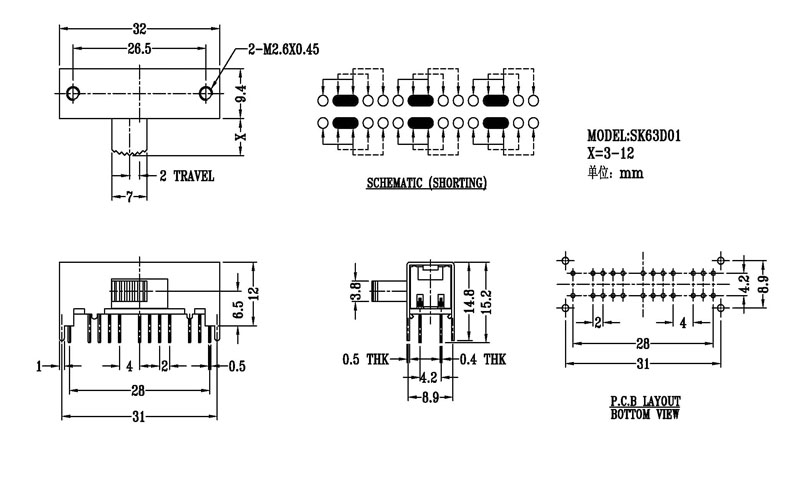 使用功率/額定值Rating:DC 50V 0.3A~1A 觸點電阻/Contact Resistance:< 100 mΩ 絕緣電阻/Insulation Resistance:≥ 100 MΩ 耐壓/Withstand Voltage:500V AC for 1 minute 使用壽命/Life cycles:10000次 操作溫度/Operationg Temperature:-16℃to+60℃ 儲存溫度/Storage Temperature:-40℃to+85℃ 符合標準/Complies with:RoHs&Reach