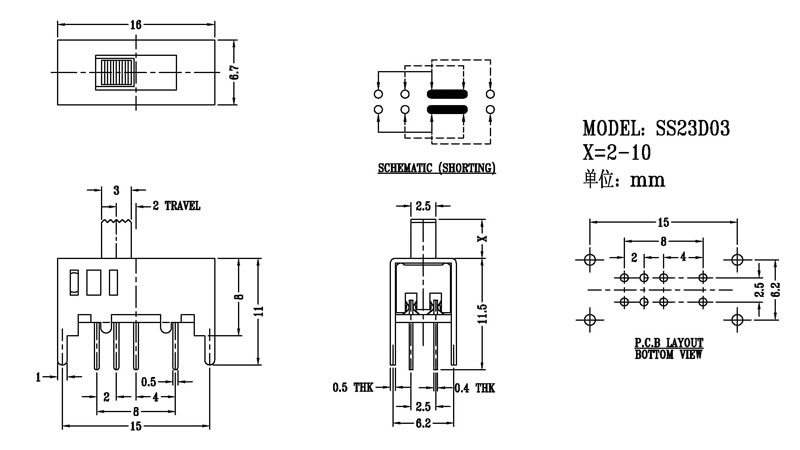 正拨拨动开关主要技術參數 使用功率/額定值:DC 50V 0.3A~1A 觸點電阻:< 100 mΩ 絕緣電阻:≥ 100 MΩ 耐壓:500V AC for 1 minute 撥動力:180~500gf 使用壽命:10000次 操作溫度:-16℃to+60℃ 儲存溫度:-40℃to+85℃ 符合標準:RoHs&Reach