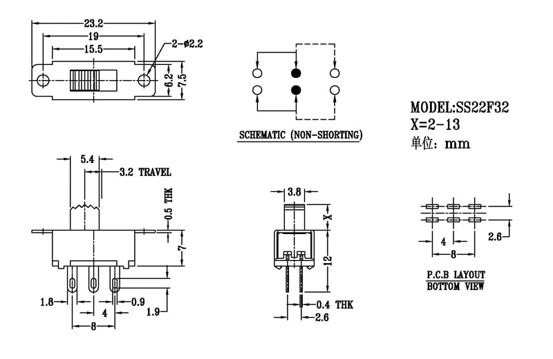 正拨拨动开关主要技術參數 使用功率/額定值:DC 50V 0.3A~1A 觸點電阻:< 100 mΩ 絕緣電阻:≥ 100 MΩ 耐壓:500V AC for 1 minute 撥動力:180~500gf 使用壽命:10000次 操作溫度:-16℃to+60℃ 儲存溫度:-40℃to+85℃ 符合標準:RoHs&Reach