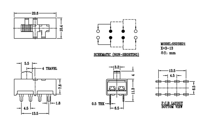 正拨拨动开关主要技術參數 使用功率/額定值:DC 50V 0.3A~1A 觸點電阻:< 100 mΩ 絕緣電阻:≥ 100 MΩ 耐壓:500V AC for 1 minute 撥動力:180~500gf 使用壽命:10000次 操作溫度:-16℃to+60℃ 儲存溫度:-40℃to+85℃ 符合標準:RoHs&Reach