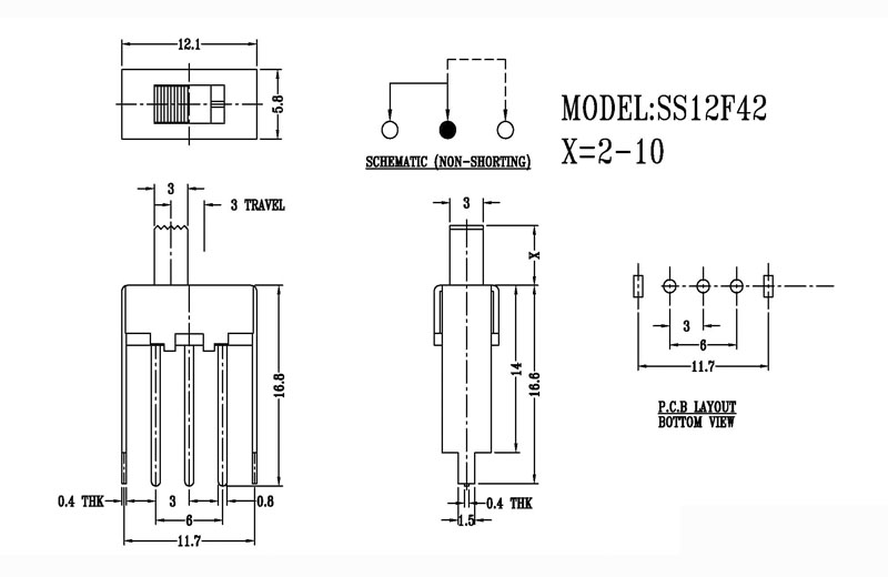 正拨拨动开关主要技術參數 使用功率/額定值:DC 50V 0.3A~1A 觸點電阻:< 100 mΩ 絕緣電阻:≥ 100 MΩ 耐壓:500V AC for 1 minute 撥動力:180~500gf 使用壽命:10000次 操作溫度:-16℃to+60℃ 儲存溫度:-40℃to+85℃ 符合標準:RoHs&Reach