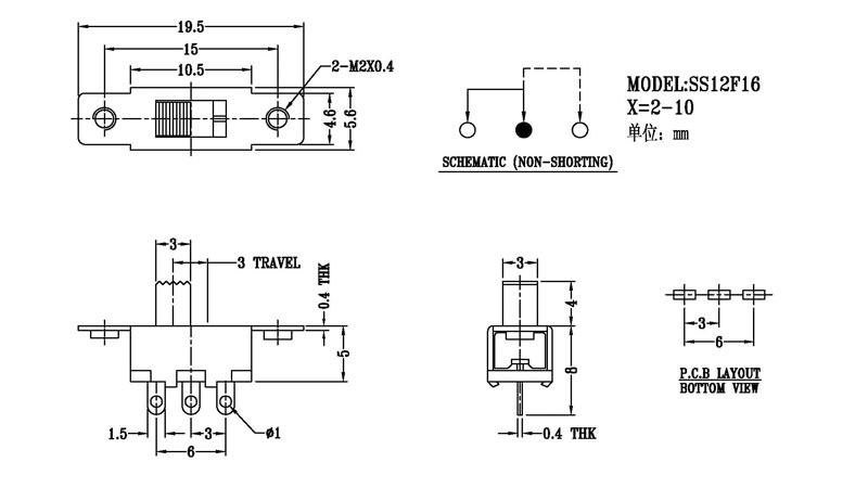 正拨拨动开关主要技術參數 使用功率/額定值:DC 50V 0.3A~1A 觸點電阻:< 100 mΩ 絕緣電阻:≥ 100 MΩ 耐壓:500V AC for 1 minute 撥動力:180~500gf 使用壽命:10000次 操作溫度:-16℃to+60℃ 儲存溫度:-40℃to+85℃ 符合標準:RoHs&Reach