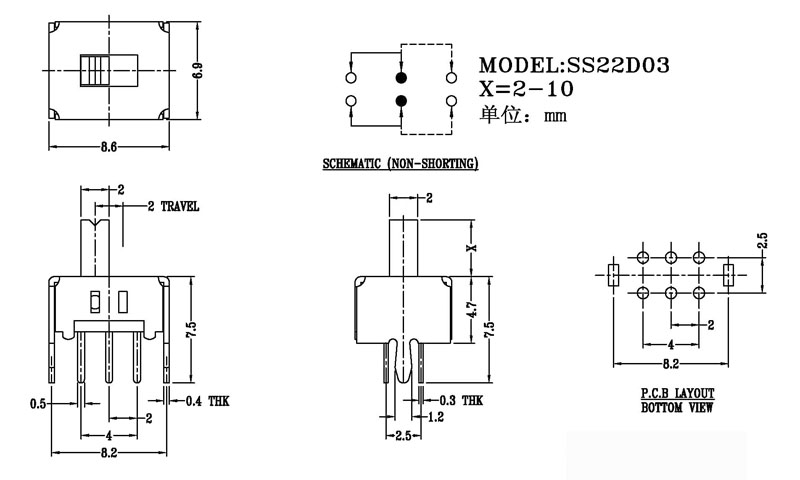 正拨拨动开关主要技術參數 使用功率/額定值:DC 50V 0.3A~1A 觸點電阻:< 100 mΩ 絕緣電阻:≥ 100 MΩ 耐壓:500V AC for 1 minute 撥動力:180~500gf 使用壽命:10000次 操作溫度:-16℃to+60℃ 儲存溫度:-40℃to+85℃ 符合標準:RoHs&Reach