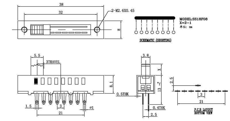 正拨拨动开关主要技術參數 使用功率/額定值:DC 50V 0.3A~1A 觸點電阻:< 100 mΩ 絕緣電阻:≥ 100 MΩ 耐壓:500V AC for 1 minute 撥動力:180~500gf 使用壽命:10000次 操作溫度:-16℃to+60℃ 儲存溫度:-40℃to+85℃ 符合標準:RoHs&Reach