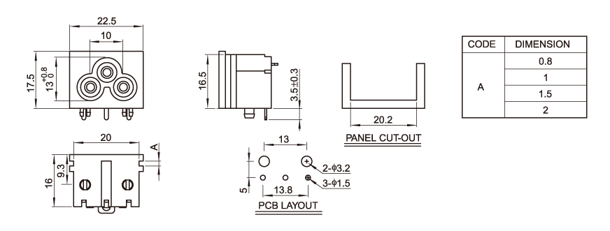 型 号:DB-6-4P5P3 关健词:梅花插座:梅花尾插座;适配器电源插座 用 途:电源适配器:笔记本电源;医疗器械电源;充电器; 尺 寸:22.5*17.5 电流电压:10A 250V