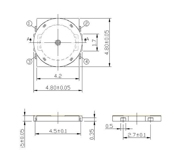 尺寸: 4.8X4.8mm 产品分类: 轻触开关 - C系列 / 5.2, 4.5, 4.8 应用 ※ 用于操作各种像手机,通讯设备之类的设备 ※ 录像机,相机,音频设备 ※ 低面和轻量级的设计 ※ 手机 特点 ※ 4.8x4.8x0.55mm尺寸图,适用于高密度安装 ※ 使应用设备尺寸图更小重量更轻 ※ 回流可焊 ※ 用12mm宽的编带包装