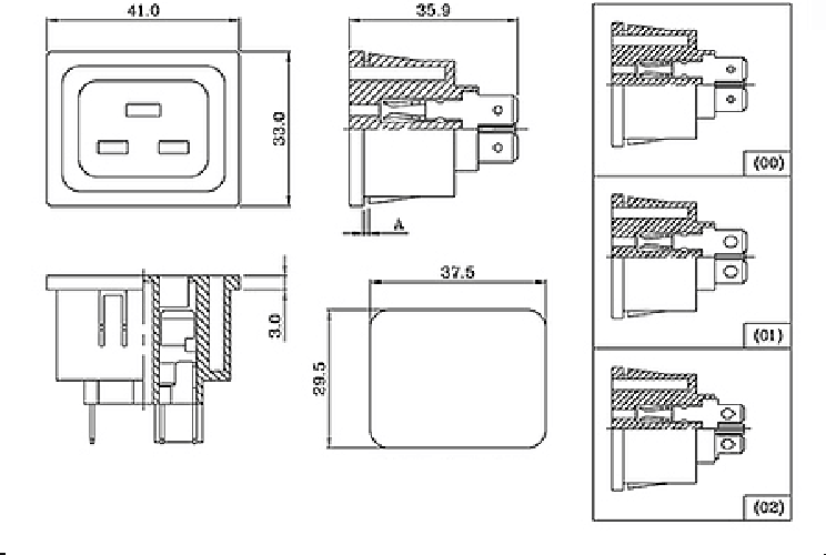 标准:IEC 60320 J 额定功率:2.5A 250V AC 绝缘电阻:100MΩ 500V DC/1分钟 绝缘强度:2000V AC/1分钟 外壳材料:热塑性塑料 94V-2~V-0