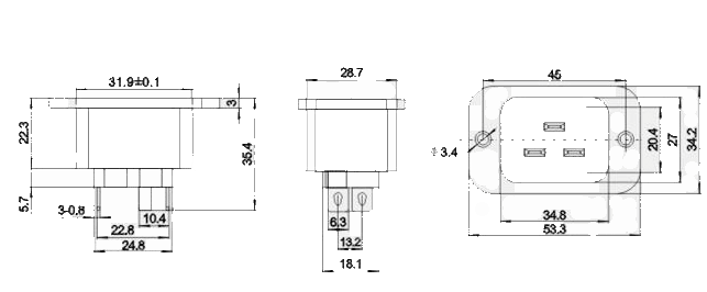 ±ê×¼£ºIEC 60320 C20 ¶î¶¨¹¦ÂÊ£º2.5A 250V AC ¾øÔµµç×裺100M¦¸ 500V DC/1·ÖÖÓ ¾øÔµÇ¿¶È£º2000V AC/1·ÖÖÓ Íâ¿Ç²ÄÁÏ£ºÈÈËÜÐÔËÜÁÏ 94V-2~V-0