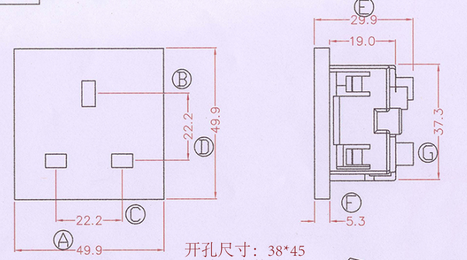 额定值:13A 250V AC 绝缘电阻:100MΩ500V DC / 1分钟 介电强度:2000V AC / 1分钟 外壳材料:热塑性塑料94V-2〜V-0 Pancel切出:45X45毫米