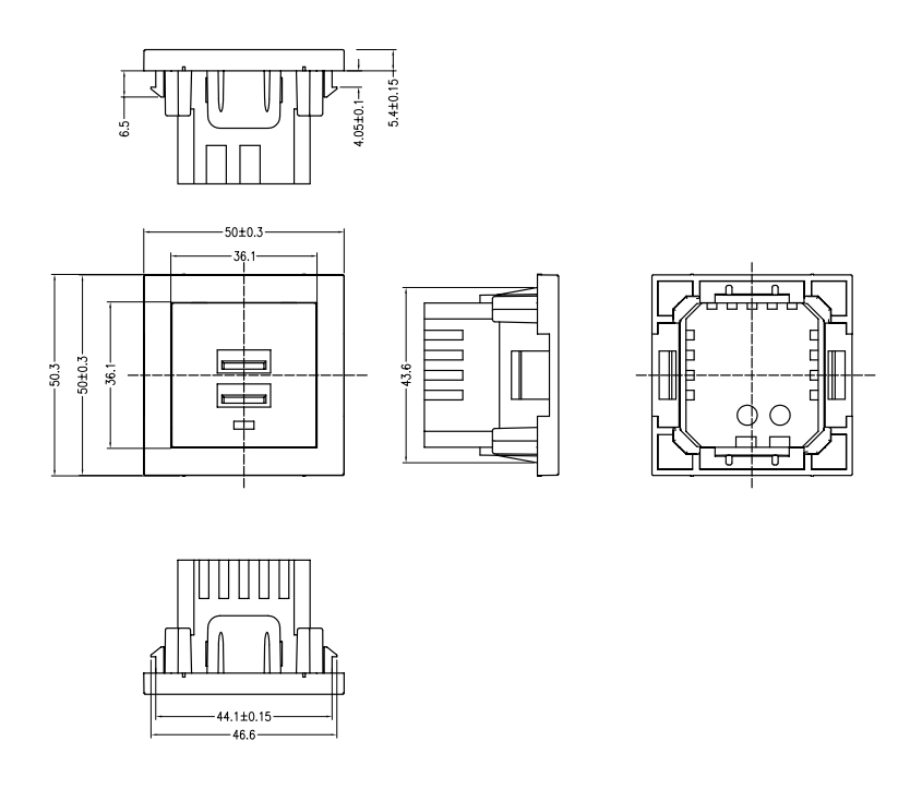 型 号:L-ACD-1 面框+USB 用 途:桌面USB模块、PDU机柜USB模块、升降USB模块 尺 寸:50*50 功能:2.1A 5V